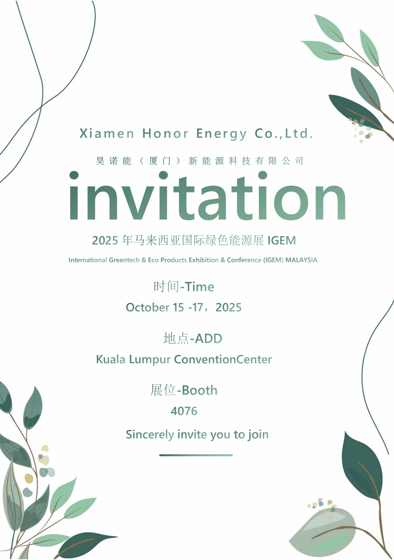 Wijzijn tevredenom onze officiële uitnodiging aan u bekend te maken voor de Malaysia International Green Energy Exhibition (IGEM) 2025.