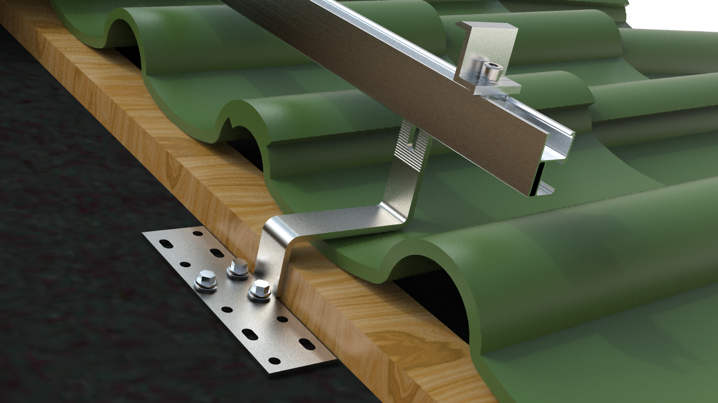 Wij gebruiken haken op het pannendak, wat een veelzijdige en duurzame oplossing is die is ontworpen voor een veilige installatie van zonnepanelen op verschillende pannendaken. We hebben verschillende vormen haken zodat we beter aan de eisen van onze klanten kunnen voldoen.