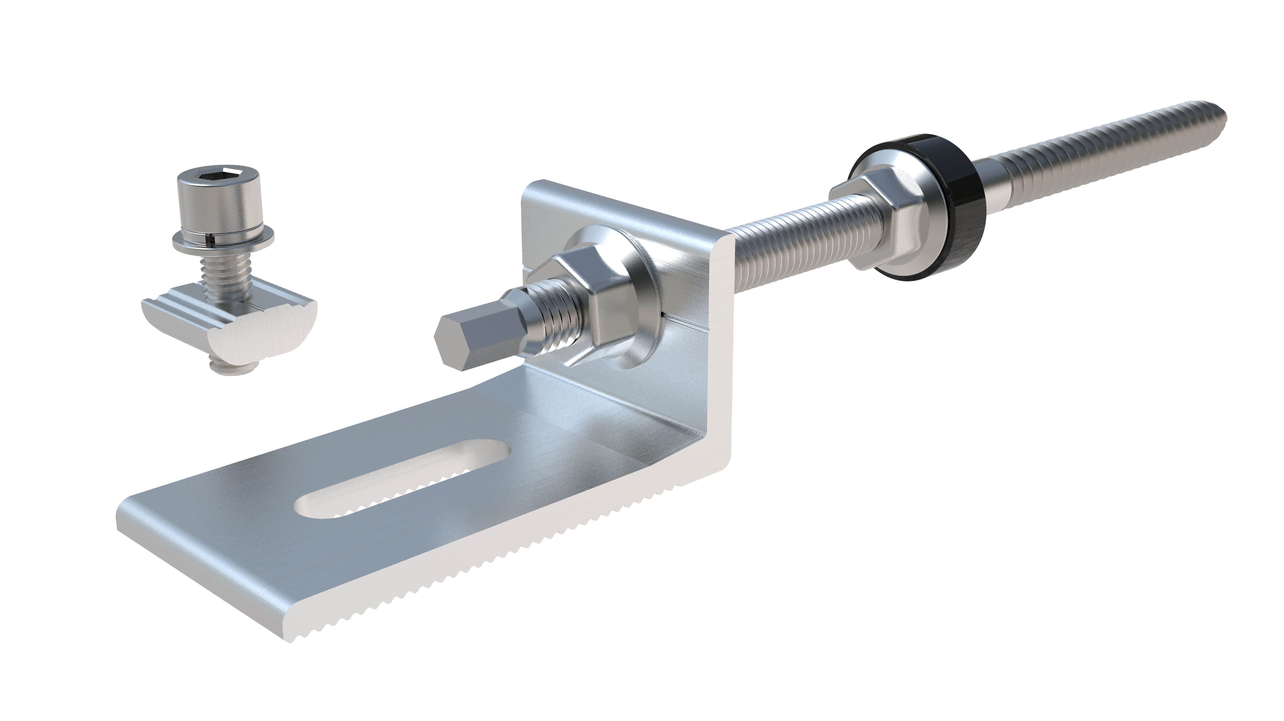 Metalen zonnedak L-voet De vorm van de houder is, trouw aan zijn naam, L-vormig. Het verbindt het dak met de rail door zijn unieke vorm, maar onderschat de sterkte niet: onze ingenieurs voeren berekeningen uit om ervoor te zorgen dat het effectief bestand is tegen windbelasting. Hoewel er gaten in het dak moeten worden geboord, beschikt het over uitstekende waterdichtheidsprestaties en zal het nooit lekken.